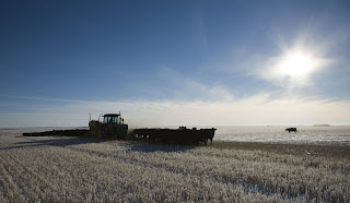 This was the Klassens first homestead! Pat Klassen took me up in his Piper Cub just before dark. It was interesting to hear him tell stories about the early settlers that moved out here in the 20’s. Most of the land is native prairie grass but you can see patches where farmers tried to make a go of it. All that is visible now are the faint lines left by their plows (as though someone had run a big comb over the ground) and an odd threshing machine sitting out in the middle of the bald prairie.