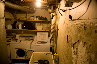 He is living in dark, rank basement now and paying about the same rate as he did for the last place. He told me that people somehow know things about him and that there is a conspiracy to keep him from getting a place to live. He doesn’t understand that people judge by outward appearances; by the way a person carries themselves and how they speak. Joe never learned those social graces.The hallway down to Joe’s basement suite.